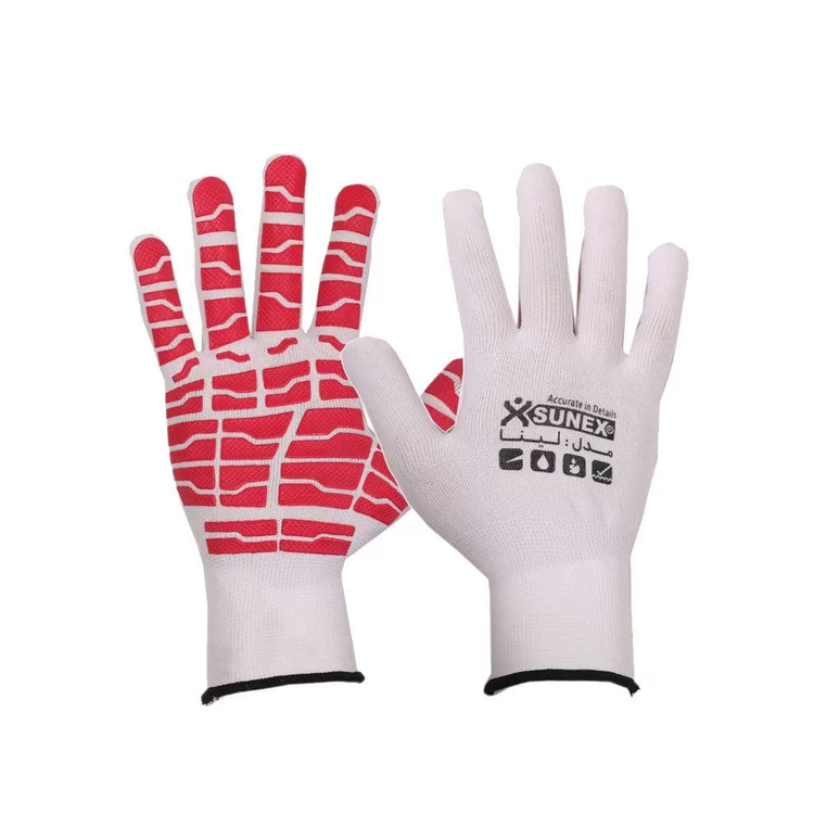 دستکش ایمنی کف لاتکس سانکس مدل لینا دارای پوشش لاتکس تزریق جدید عنکبوتی